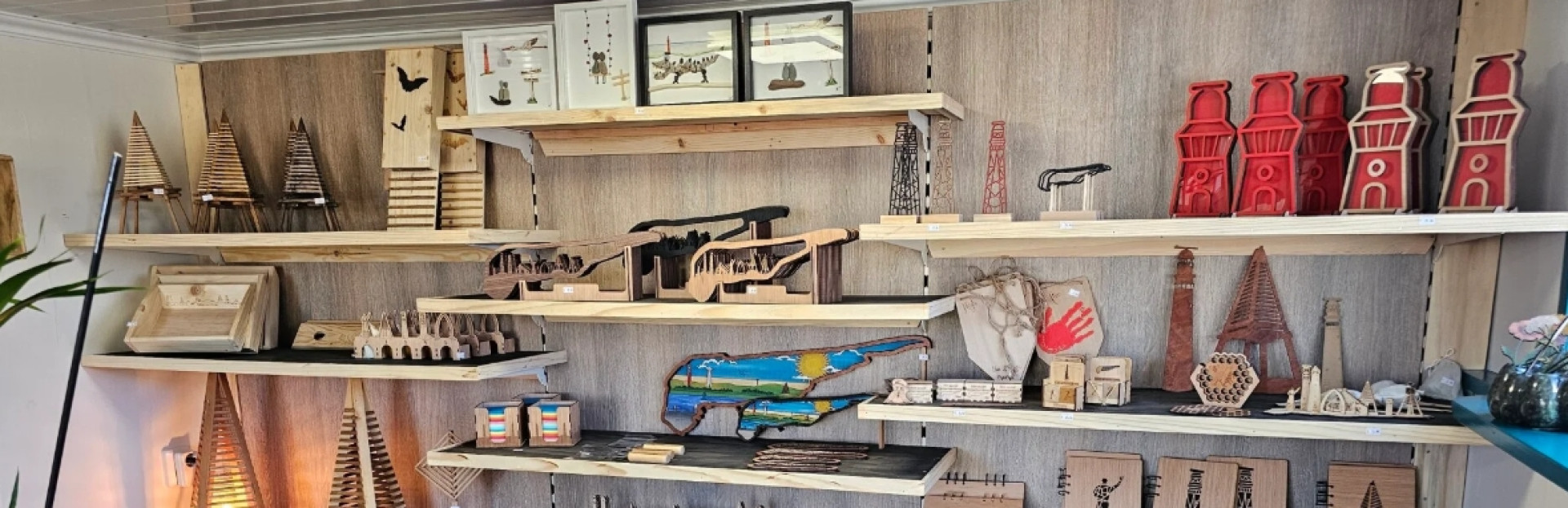 Aan het Karelspad aan de westkant staat een schuur met 2 grote deuren en een eigen oprit. Achter deze deuren zit ons kleine winkeltje verstopt. We verkopen hier allerlei leuke souvenirs van Schiermonnikoog. Alles wat hier te koop is hebben wij zelf ontworpen en zelf gemaakt. We gebruiken hiervoor onze lasers om de materialen te snijden en te graveren.
